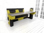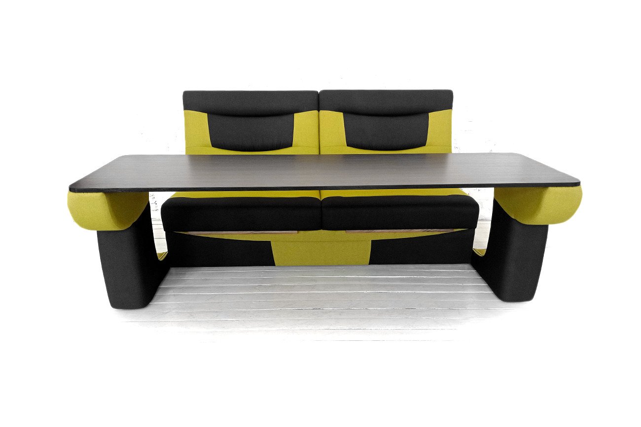 Диван-трансформер "Реклайнер 5 в 1 (1900)" - це диван, який може трансформуватися в стіл. Він супроводжується двома подушками для зручності та має дві ніши для зберігання речей. Цей диван є комфортабельним та функціональним мебельним виробом.