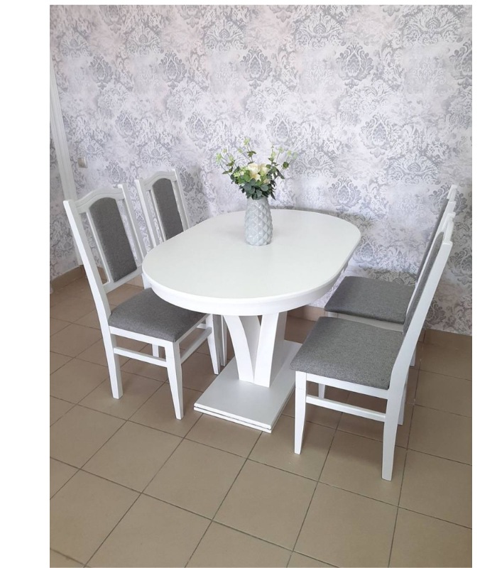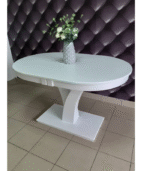 Овальна стільниця на елегантній центральній ніжці забезпечує стійкість та зручність у використанні.